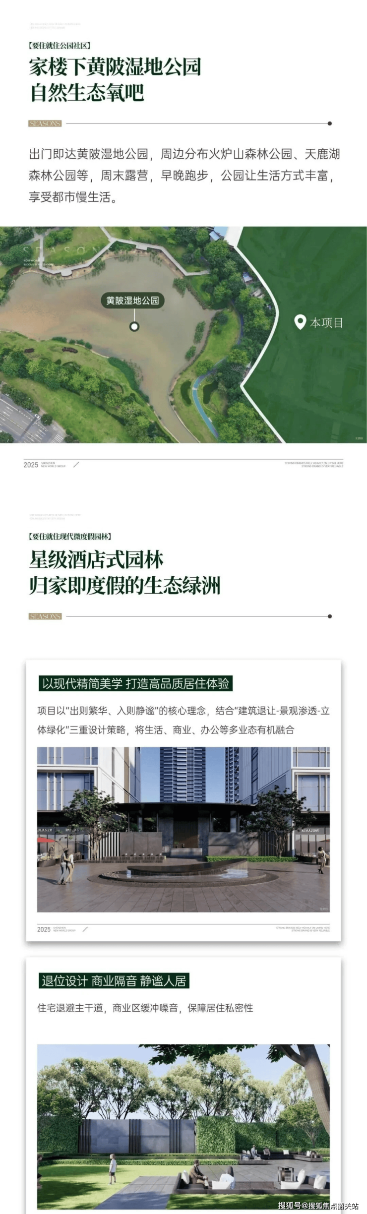 新世界·四季山水踞守广州东进战略桥头堡——黄埔科学城板块,是由港资巨头新世界中国匠心打造的山居封面作品。项目总占地面积约3.6万平方米,总建筑面积约11.5万平方米,容积率约3.0,规划了多栋高层住宅,总计约680户。作为新世界集团在粤港澳大湾区的标杆力作,项目依托千亿级多元化城市运营商的雄厚实力,涵盖了地产开发、酒店管理、商业运营等五大业务板块,为业主提供了极高的资产安全垫。