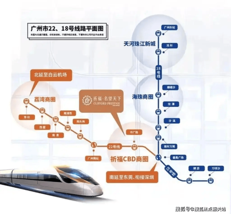 轨道交通:项目距离地铁22号线市广路站直线距离约300米,实测步行约5分钟。22号线串联番禺广场、广州南站、白鹅潭三大枢纽,未来可直达白云机场,形成“空铁联运”大动脉。对比竞品:同区域部分项目宣称“地铁上盖”,但实际距离超1公里,需依赖共享单车接驳;祈福名望天下是真正的“步行可达”地铁物业,确定性更高。