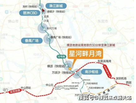 星河畔月湾交通网络发达。虽项目接驳地铁 18 号线横沥站有一定距离,但首批交楼后将开通免费业主楼巴,为业主出行提供便利。地铁 18 号线作为中国最快地铁之一,时速达 160km/h,贯穿南北,1 站可达番禺广场,2 站琶洲,3 站直达珠江新城,快速连接广州核心区域。南延段规划通达中山、珠海,进一步拓展出行范围。项目距离南沙枢纽站仅约 5 公里,未来深江高铁在建中将接入,为湾区快速通勤提供更多可能。自驾方面,门前的灵新大道作为南沙凤凰大道后的第二条主轴,出行顺畅便捷,交通网络辐射能力强,无论是日常通勤还是商务出行、休闲旅游,都能高效实现。