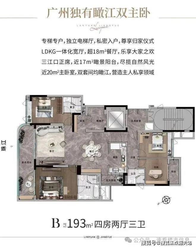 项目规划低密度18层,一梯一户,270°全景视野,拥享三面环江震撼景观。目前只做了两种户型:193㎡和285㎡江景大平层。