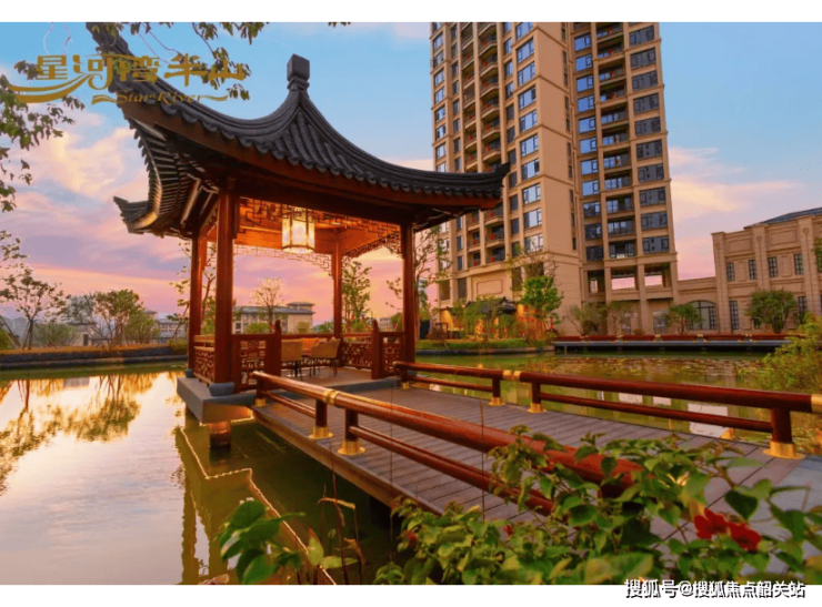 苏式园林打造:项目萃取晋派徽派造园精髓,打造自然、生态的水石庭院,采用临户式水溪手法,在楼栋门前打造灵动水溪,形成一岛一栋、玉带缠腰的景观格局。