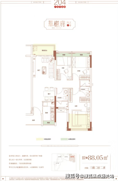 华樾府提供了75至90平方米的三房两卫户型选择,其中88平方米的三房户型布局合理,适合小家庭居住;90平方米的户型则更为宽敞,适合大家庭或对居住品质有较高要求的人士。每种户型均经过精心设计,充分考虑了空间利用效率和居住舒适度,力求为业主创造一个温馨舒适的家。无论是日常起居还是接待亲朋好友,这些户型都能满足不同家庭的需求。