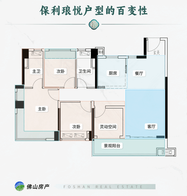 当然,除了飘窗PLUS的越级感,保利琅悦尽可能少的承重墙,也给户型带来更百变的可能。