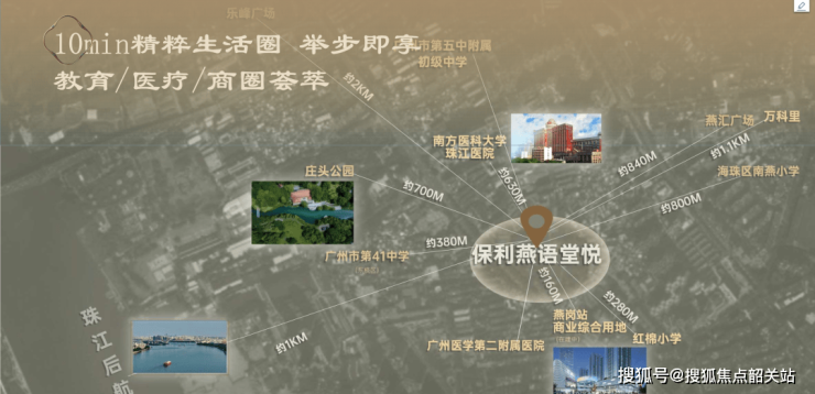 4大商圈:紧邻约3.4万方商业综合体,5公里内畅联江南西、中大、江燕、乐峰广场(1.5公里)四大商圈环绕,万科里(1公里)、富力海珠城2公里。