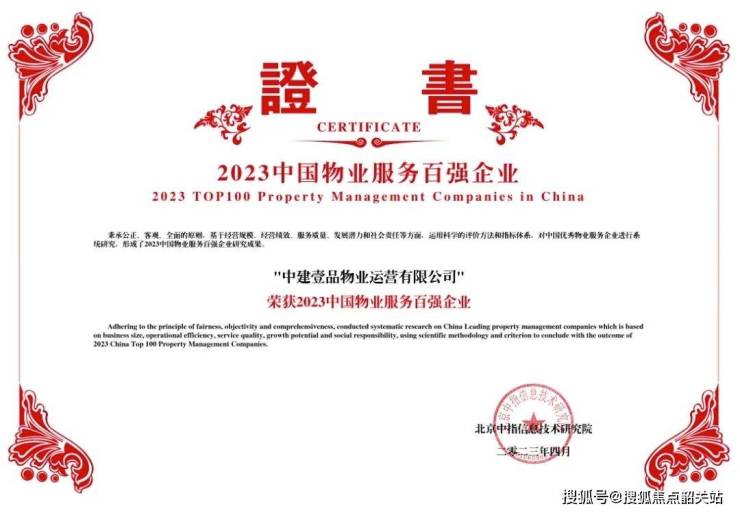 中建壹品物业荣获“2023中国物业服务百强企业”、“2023中国国有物业服务优秀企业”称号