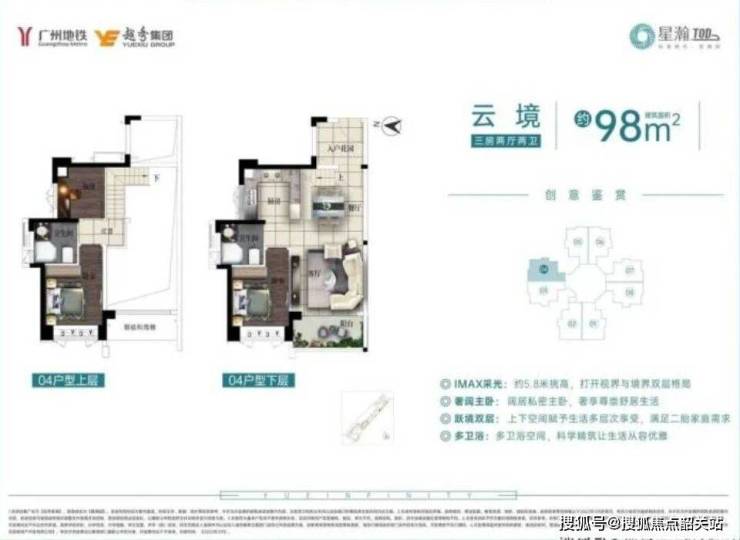 针对喜欢个性化居住体验的群体,越秀星瀚特别推出了98㎡的复式户型。上下分层的格局,打破了传统平层的单调,增加了空间的层次感和趣味性。下层通常设置为公共活动区域,包括客厅、餐厅和厨房,方便家人互动和接待客人;上层则设置为私密的休息区,包含卧室和书房,保证了主人的隐私。这种动静分区的设计,让家庭生活更加井然有序。复式的挑高设计也让室内空间显得更加通透大气。对于追求时尚、喜欢独特生活方式的年轻家庭或SOHO一族来说,这款户型无疑具有极大的吸引力。