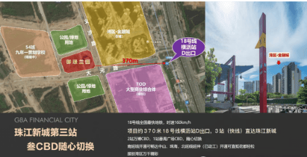 湾区金融城交通优势得天独厚。项目距离地铁 18 号线横沥站仅约 80 米,真正实现家门口的便捷出行。18 号线时速最高达 160km/h,无需换乘,轻松串联广州各 CBD,1 站直达万博 CBD、2 站抵达琶洲、3 站直通珠城 CBD,大大缩短了与城市核心区域的时空距离。不仅如此,未来 18 号线还规划延伸到中山、珠海等大湾区城市,进一步拓展了出行范围,为业主开启大湾区一小时生活圈,无论是日常通勤、商务出行还是休闲旅游,都极为便捷高效。