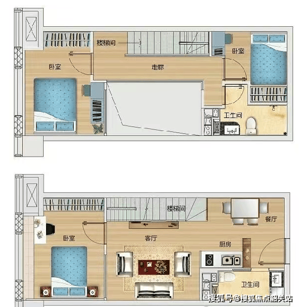 建筑面积约56平方米双钥匙5米层高稀缺户型:上下分租,提供双倍收益,空间利用率高。