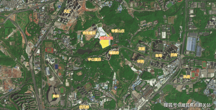 项目地理位置优越,距离珠江新城不远,临近天河智慧城与金融城,周边聚集了大量的高新技术企业和产业资源,年产值高达约1100亿元。此外,越秀·观樾所在的牛奶厂板块,拥有丰富的山水资源,三面环山,环绕着太阳湖和月亮湖,为居民提供了得天独厚的自然生活环境。