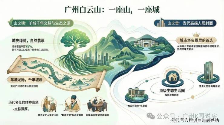 白云山作为广州的城市绿肺,赋予了白云新城独一无二的生态底色。在城市发展日益追求宜居属性的今天,临近自然山体的居住区愈发珍贵。云樾和鸣与白云山保持着恰到好处的距离,既能享受山林带来的清新空气与静谧环境,又不会因距离过远而脱离城市核心,实现了自然与繁华的平衡。