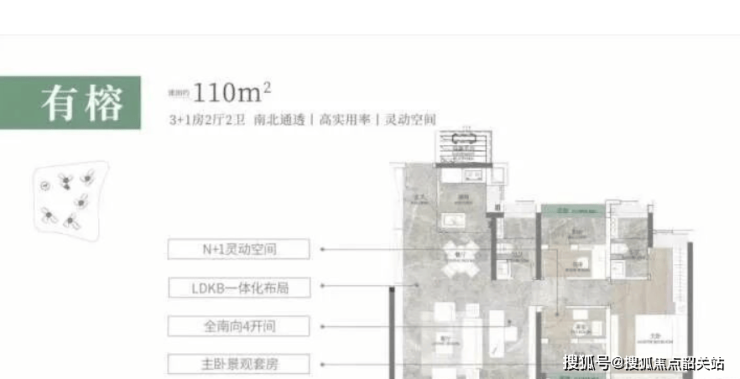 111㎡三房:使用率 96%,南北通透,三开间朝南,首付 2 成起