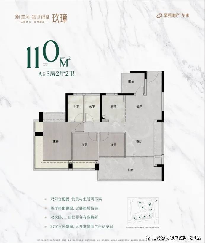 项目推出的户型均采用南北通透设计,通风采光俱佳。建面约 98㎡三房户型,做到三开间朝南,搭配超大观景阳台,将社区园林美景尽收眼底;主卧套房设计,配备独立卫浴与衣帽间,私密性与舒适度拉满。更多户型亮点,欢迎致电 [广州星河盛世锦城] 售楼处热线 400-655-7089(开发商权威认证)了解!
