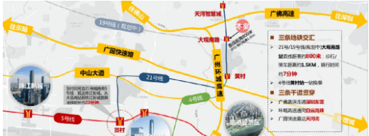 城轨方面,广佛东环线及穗莞深城轨环绕项目。广佛东环线从广州南站出发,可连通白云机场,板块内设有智慧城站,未来乘坐城轨可快速通达广州各大交通枢纽。穗莞深城轨广州东站至深圳机场已通车,奥体中心站即天河东站即将启用,直线距离项目约 1500 米,轻松实现大湾区城市快速通行。