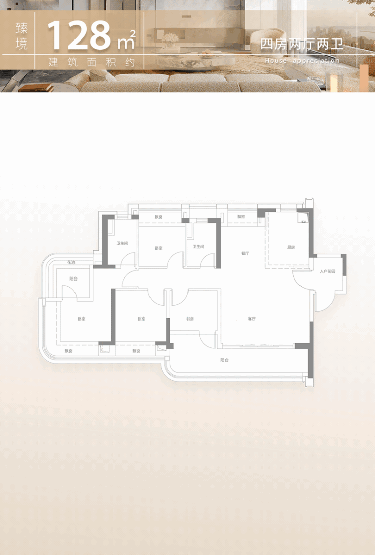2. 建面约128㎡四房两厅两卫(首开主力户型)