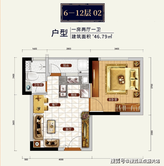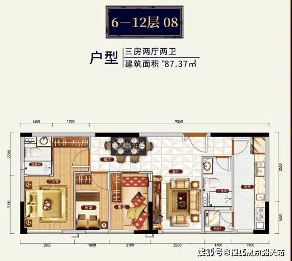 约 71 - 79㎡的两房和约 88 - 104㎡的三房。
