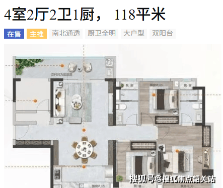 118㎡四房两厅两卫:南北通透,厨卫全明,双阳台,总价根据具体楼层有所不同。