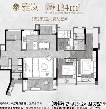 以约一百三十四平方米的户型为例,这是项目的主力户型之一,深受市场追捧。该户型采用了经典的竖厅设计,客厅开间阔绰,进深适中,空间感极强。南向超大面宽的景观阳台,将白云山景毫无保留地引入室内,让客厅成为了观景的最佳位置。餐厅与客厅相连,形成南北通透的格局,空气对流顺畅,时刻保持室内空气清新。主卧套房设计,配备了独立卫生间和衣帽间,保障了主人的私密空间和尊贵体验。次卧和书房布局合理,既能满足家庭成员的居住需求,又能提供灵活多变的功能空间。