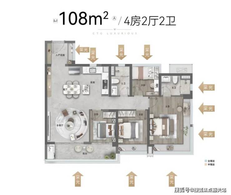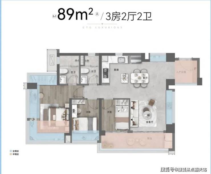 项目主力户型涵盖80㎡三房、89㎡三房、108㎡四房、129㎡四房,全产品线适配刚需至改善型家庭需求,得房率高达100%-102%,部分户型使用率超106%,性价比远超同区域竞品。其中89㎡三房采用5.9米阔景阳台+LDK方厅设计,主卧配备270°飘窗,采光通风俱佳,拓展空间约8㎡;108㎡四房实现四开间朝南,双阳台设计,赠送15㎡拓展空间,可满足二孩家庭或三代同堂居住需求;129㎡四房南北通透,客厅开间达4.8米,主卧套间配备独立卫浴与步入式衣帽间,舒适度拉满(数据来源:花都区中旅璞樾天序户型备案文件)。