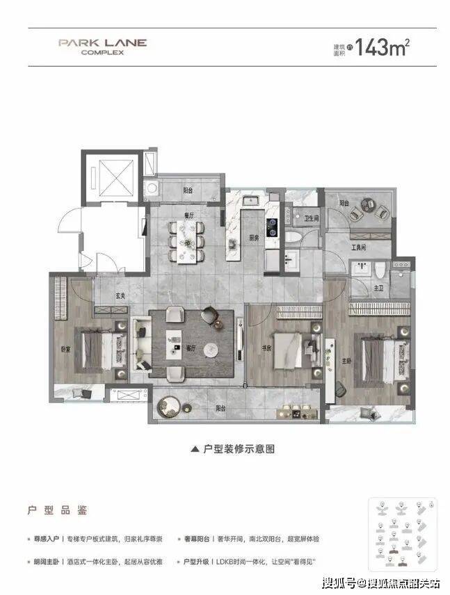 36、33栋:小高层143㎡户型,两梯两户板式小高层,南北对流双阳台,并设有独立电梯厅入户,给予业主私密且舒适的居住体验。