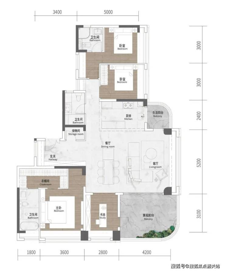 03户型则带南北对流双阳台,主阳台进深有3.1米,面积甚至比一个次卧还大。