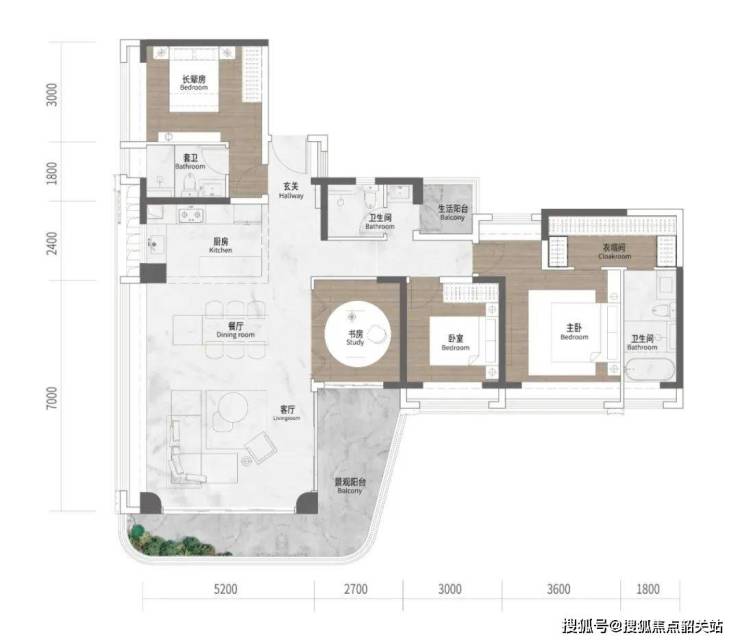 其中,建筑面积198㎡的四房带7.8米L型景观阳台,可揽东平河及小区园林双景,主人房面积几乎与客厅持平,居住尺度十分阔绰。