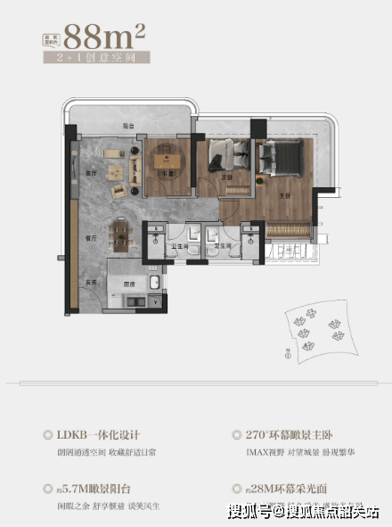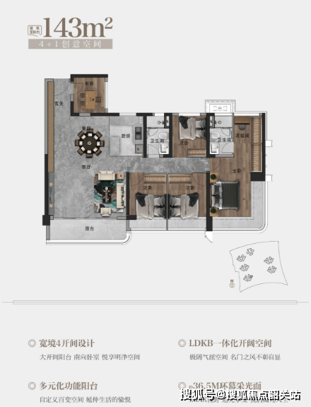 每个户型都采用了LDKB一体化设计,增强了空间的连贯性和使用效率。
