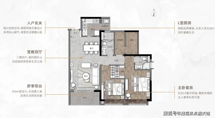 3.9M的大开间,宽阔气派客厅,动静分离、干湿分区;