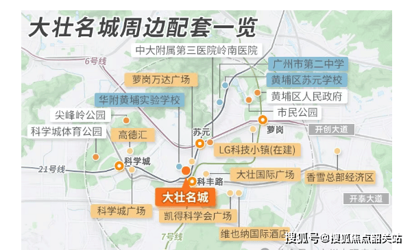 交通便捷性是大壮名城的一大亮点。项目周边拥有三条地铁线路——6号线、21号线和新开通的7号线二期,均距离小区不远,步行即可到达最近的站点。这三条地铁线几乎覆盖了广州的核心区域,使居民能够轻松抵达天河、荔湾、越秀等多个重点板块与商圈。特别是三线交汇的独特优势,使得大壮名城成为科学城乃至整个广州少有的交通便利之地,大大提升了居住于此的生活质量和工作便捷性。