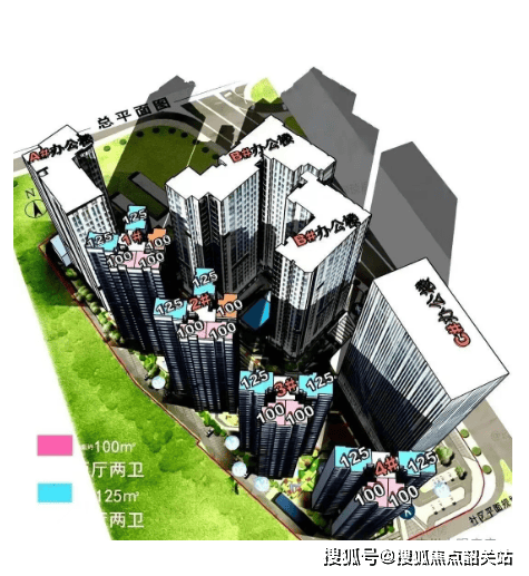 项目住宅仅规划 99㎡三房两厅两卫与 125㎡四房两厅两卫两种户型,均为全朝南设计,4 栋点状式楼栋布局确保每户观景视野与采光通风: