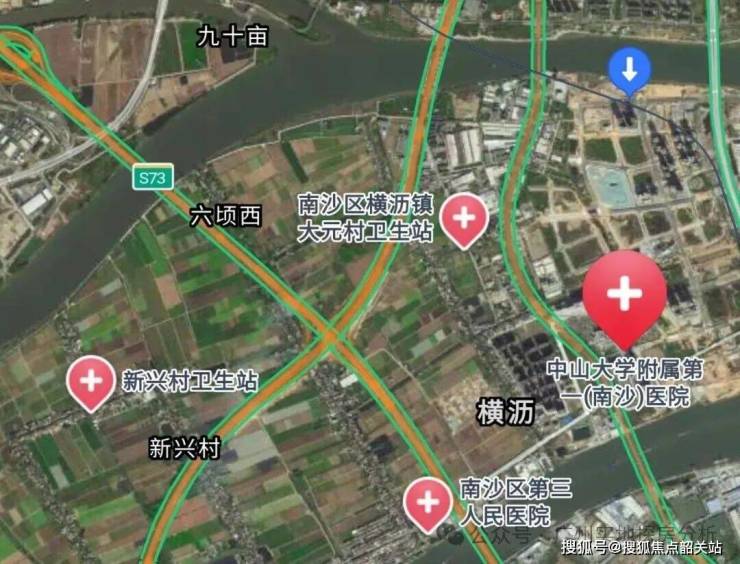 A:1.7公里内有中大附一南沙医院(三甲,含直升机停机坪),3公里内还有市妇幼医疗中心(2024年底开业)、中大附属口腔医院等。