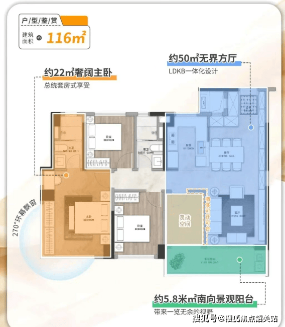 户型,是改善盘的灵魂。保利天汇·汇悦组团采用新规2梯3户设计,每部电梯仅服务46户,候梯时间大幅缩短,私密性与效率兼得。更惊艳的是其接近100%的使用率——这在当前普遍“公摊膨胀”的市场中堪称降维打击。主力116㎡三房+1多功能房,LDK一体化布局,5.6米大阳台贯通客厅与次卧,采光通风拉满;主卧270°转角飘窗,视野开阔,小户型做出大宅感。139㎡四房更是改善一步到位之选:南向面宽近16米,南北双阳台对流,最小次卧也有9㎡,轻松放下1.5米床+书桌。全屋收纳系统贯穿玄关、厨房、卧室,细节处见功力。实测对比同区域竞品,汇悦组团在同等面积下多出5-8㎡实用空间,相当于省下10万+购房成本。这种“空间魔术师”级的设计,正是其热销的核心密码。
