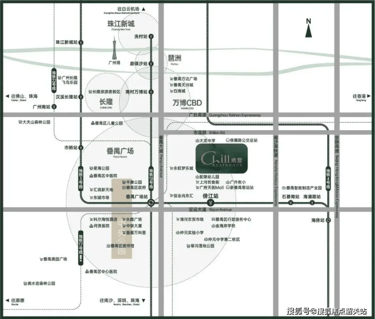 地铁:项目距番禺广场站直线距离约800米(车程3分钟),3号线直达珠江新城(约25分钟),18号线快线2站到冼村(约18分钟)。
