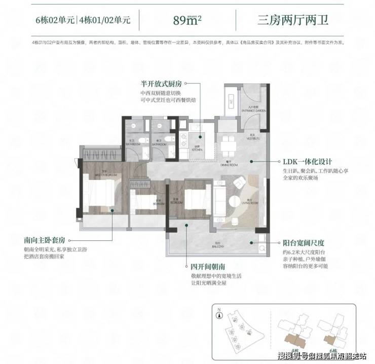 88㎡小三房:6.2米阳台连通客厅与次卧,实际使用面积相当于传统105㎡户型