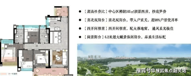 105㎡四房两卫:南向四开间,可瞰稀缺一线白云湖景,是全市最具性价比的湖景房之一。