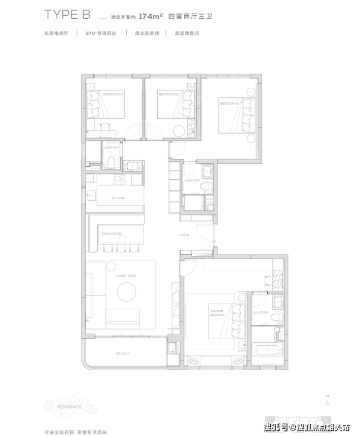 合生缦云所有楼栋均为16-17层纯板式小高层设计,专梯专户,确保住户的私密性和舒适度。户型面积从145平方米到168平方米不等,主要户型包括四室两厅三卫的四叶草户型。每个空间都采用了优质材料和工艺进行独特设计,满足现代智慧社区与智能生活的极致体验。