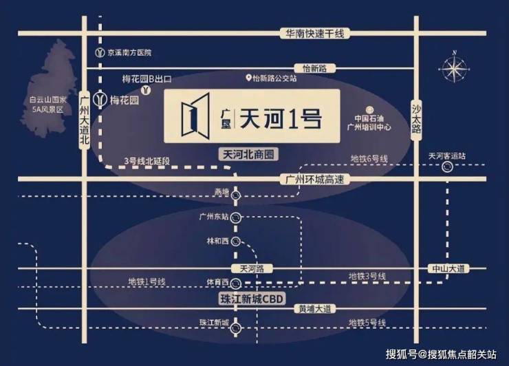 广垦·天河1号坐落于天河怡新路核心地段,交通优势极为明显。项目西侧约400米即是地铁3号线梅花园站B出口,2站可达广州东站,5站直达珠江新城CBD,通勤效率高,是真正意义上的地铁上盖资产。项目东侧约2公里为沙太路,可快速接入环城高速、华南快速、内环路等主干道,实现半小时畅达广州各大核心区域。此外,项目紧邻广州大道,作为城市南北向交通主轴,车流密集、通达性强,进一步增强了区域交通的便捷性。结合地铁、高速、主干道等多维交通体系,广垦·天河1号不仅满足日常通勤需求,也为投资型客户提供了稳定的客流与租金回报保障。