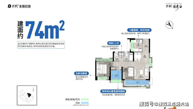 项目一期推出了74-170平方米的三到四房户型,通过巧妙的设计实现了四开间以上朝南,确保了充足的采光和通风效果。二期则推出了63-82平方米的小户型,实用率最高可达107%,比市面上普通产品更具空间感。特别是63平方米的三房两厅一卫户型,不仅实用率高,而且主卧配有U型全景飘窗,三江汇聚景观面更佳,是刚需上车的首选。