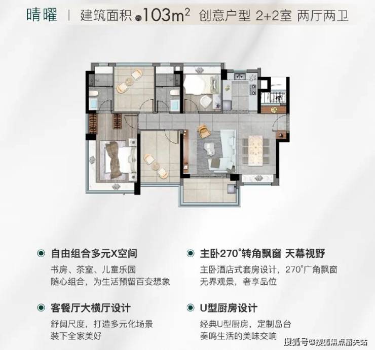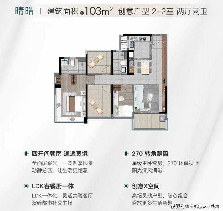 【户型设计:三至四房+270°主卧飘窗】
