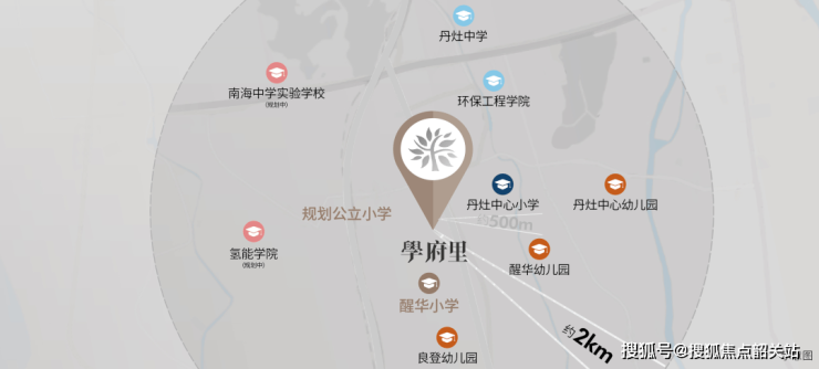 教育是该项目最突出的核心优势。社区内配建24班制公立醒华小学,已于2024年9月正式开学,由政府统筹管理,师资与课程体系有保障。项目距省一级名校丹灶中心小学仅约300米,形成“双小学环伺”格局。幼儿园方面,醒华幼儿园与丹灶中心幼儿园均在800米范围内;中学阶段,丹灶中学及2024年新开办的12年一贯制公立南海中学实验学校(含小学、初中、高中)均在2公里辐射圈内。如此密集且全龄段覆盖的优质教育资源,在丹灶乃至整个南海西部片区实属罕见,真正实现“家门口上好学校”,助力孩子赢在起跑线。