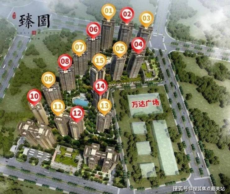 臻园整体效果图;招商臻园,点式布局,栋栋坐北向南,户户朝南,户型有109-143㎡三至五房,客厅阔大,主卧宽敞,南向景观大阳台,俯览万千景致,多空间人性设计,满足三代同堂的各种所需。