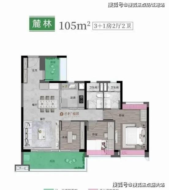 保利锦上项目的105㎡3+1房2卫户型,堪称“明星户型”,其设计独特且实用,充分满足了现代家庭对于居住品质的追求。