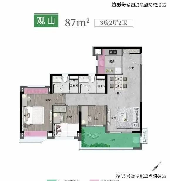 2. 户型价值:88㎡做三房,空间利用率超90%