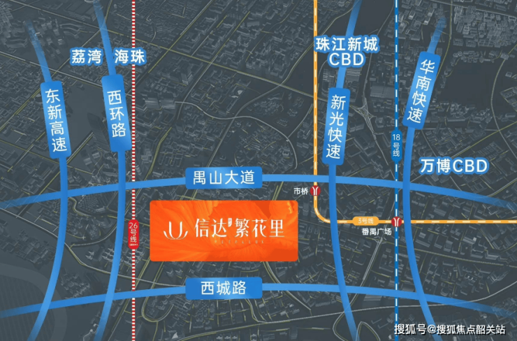 项目步行约1.7公里可达市桥地铁站,通过地铁3号线可快速到达多个核心商圈如长隆、番禺广场等,并可通过换乘到达珠江新城CBD。此外,规划中的地铁26号线有望在禺山大道和西环路交界处设站,进一步提升项目的交通便利性。