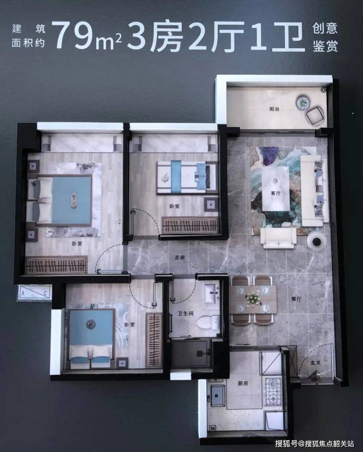 建面约79㎡3房2厅1卫