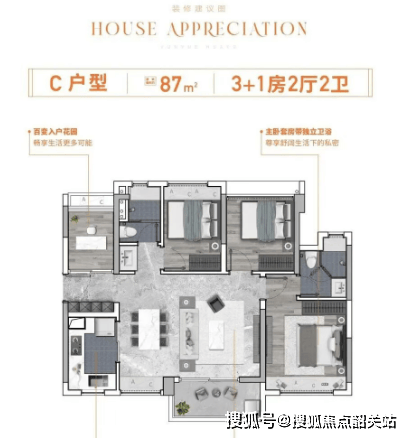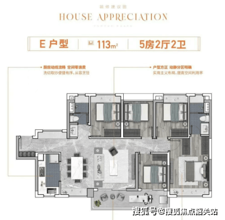 项目提供多种户型选择,从建面约70㎡至113㎡不等,涵盖三至五房的设计,能够适应不同家庭结构的需求。所有户型均采用全南向设计,保证了充足的采光和通风,同时超高实用率让每一寸空间都得到充分利用,实现了“同等面积,多享一房”的设计理念。