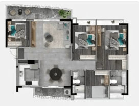 作为区域内的稀缺低密住品,首铸•铂瑞云湾在产品设计上充分考量了现代家庭的多元化需求。项目推出86至152平方米的全龄段奢适多功能N+1房,涵盖三房至四房多种户型组合,满足不同家庭成员结构的变化需求。其中,约86平方米产品实现惊人的三房两卫格局,得房率超九成,动静分区明确,全屋飘窗设计带来充沛采光。南北双阳台设计、LDK一体化布局、南向三开间面宽等创新设计,极大提升了居住舒适度与生活品质。高层单位更可远眺莲花山国家4A级景区,私享30米一线江湾美景,视野开阔,景观资源丰富。