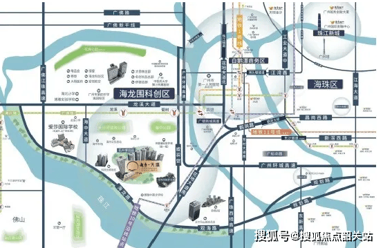 越秀天瀛地处荔湾区海中街道,地理位置上与佛山仅一河之隔,周边有花地大道、环城高速等交通干线,自驾出行较为便捷,20 公里内可抵达老荔湾、越秀、珠江新城等地,不堵车情况下 40 分钟左右就能到达核心区域。公共交通方面,小区门口 300 米处有海中公交总站,可接驳广佛线菊树站、1 号线西塱站,进而通往荔湾、越秀、天河等核心区域,但距离最近的广佛线龙溪地铁站直线距离 1.9 公里,步行出行不太现实,对于依赖地铁通勤的购房者来说需慎重考虑。不过,项目所在区域被提及将打造为海龙科创区,未来区域发展或为交通配套带来新的机遇。