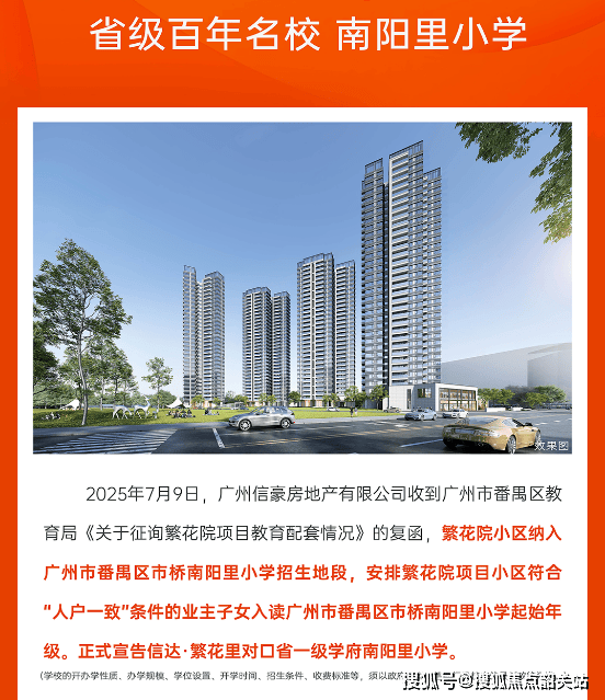 目前项目已官宣对口南阳里小学(省一级),具体入学需满足广州义务教育政策要求(如户籍、房产等),建议购房后及时将户籍迁入,并关注当年教育局招生细则。项目周边还有市桥中心小学、北城小学等省一级学校,教育资源丰富,可根据家庭需求选择适配学校。