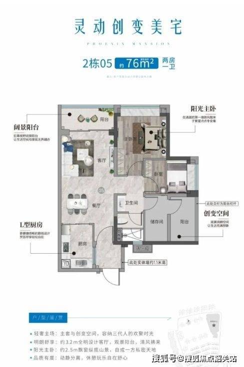 主推76-108平方米三至四房户型,布局合理,南北通透、全明格局,空间利用率高。部分户型设计赠送面积,实现同面积多一房的功能优化。厨房、餐厅、客厅及阳台功能分区明确,同时兼顾家庭互动与私密空间需求,满足不同家庭成员的生活需求。