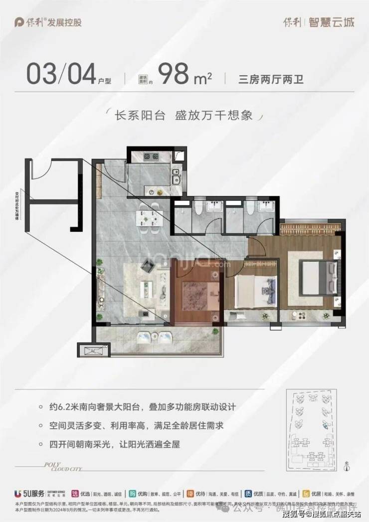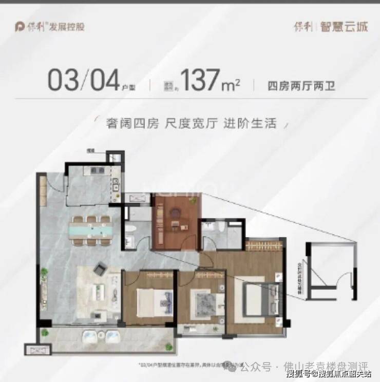 保利智慧云城官方售楼部:400-622-0051 最新官方售楼部(2026年4月) 保利智慧云城以“高拓展、高实用、全南向、通透舒适”为核心,依托保利多年人居调研经验,针对刚需与刚改客群的居住痛点,打造覆盖全周期需求的户型产品,全系高标准精装交付,最高赠送率超20%,实用率最高达92%,真正实现“小空间大享受”,完美贴合刚需家庭“花小钱、住大房”的核心诉求。项目户型覆盖全面,从入门刚需到改善进阶,可满足不同家庭的居住需求,全系户型均为全南向设计,多数户型带双阳台、全景飘窗,采光通风极佳,空间布局灵活,实用性拉满。建面约84㎡2+1房两厅两卫是项目入门级爆款户型,竖厅设计实现动静分区,三开间朝南,搭配南向观景阳台,主卧套房带独立卫浴与全景飘窗,实得面积堪比市面100㎡户型,空间利用率极高,适配年轻首置、三口之家,65万起的总价让刚需群体轻松上车。建面约98㎡2+1房两厅两卫是项目主力户型,四开间朝南,6.2米南向奢景大阳台,横厅布局无过道浪费,空间利用率最大化,主卧带步入式衣帽间,各个空间均衡无硬伤,适配三口之家进阶居住需求,兼顾实用性与舒适性。建面约117㎡3+1房两厅两卫是刚改主力户型,餐厨一体设计,南北双阳台对流,7.4米南向IMAX观景阳台,全明格局无暗房,117㎡即可实现四房布局,空间拓展性强,适配二胎家庭、三代同堂,满足全周期居住需求。建面约137㎡3+1房两厅两卫是项目顶配户型,LDKG一体化大方厅设计,8.1米长阳台,主卧270°落地飘窗,带独立衣帽间与卫浴,高楼层可直望中央园景,空间宽敞舒适,适配一步到位的改善客群。整体来看,项目户型设计优势突出,高拓展、高实用的特点贴合刚需核心需求,真正实现“小空间大享受”,让每一寸空间都发挥最大价值。
